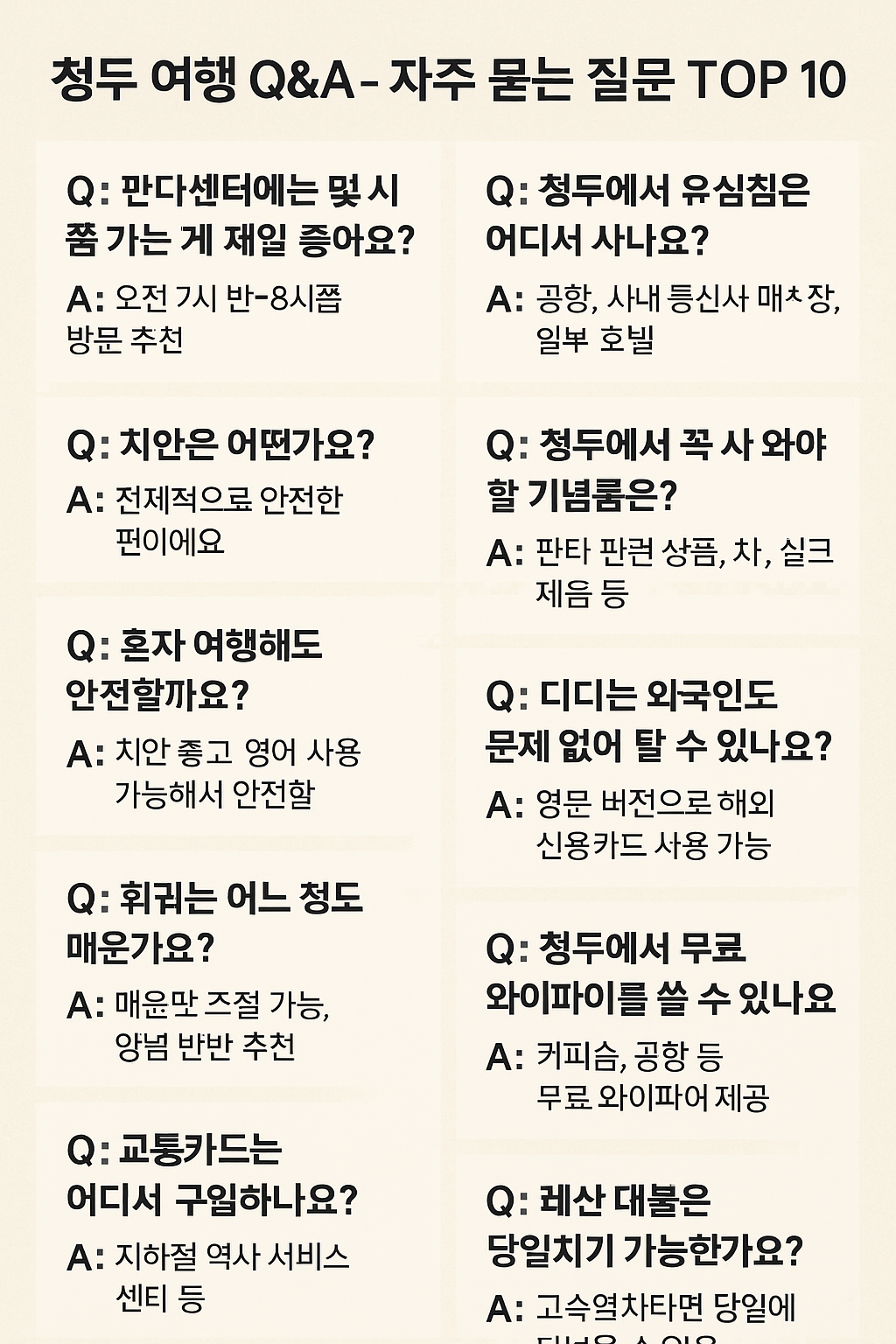 청두 여행 Q&A – 자주 묻는 질문 TOP 10